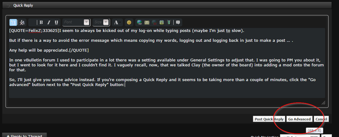 FelixZ wrote:I seem to always be kicked out of my log-on while typing posts (maybe I'm just to slow).