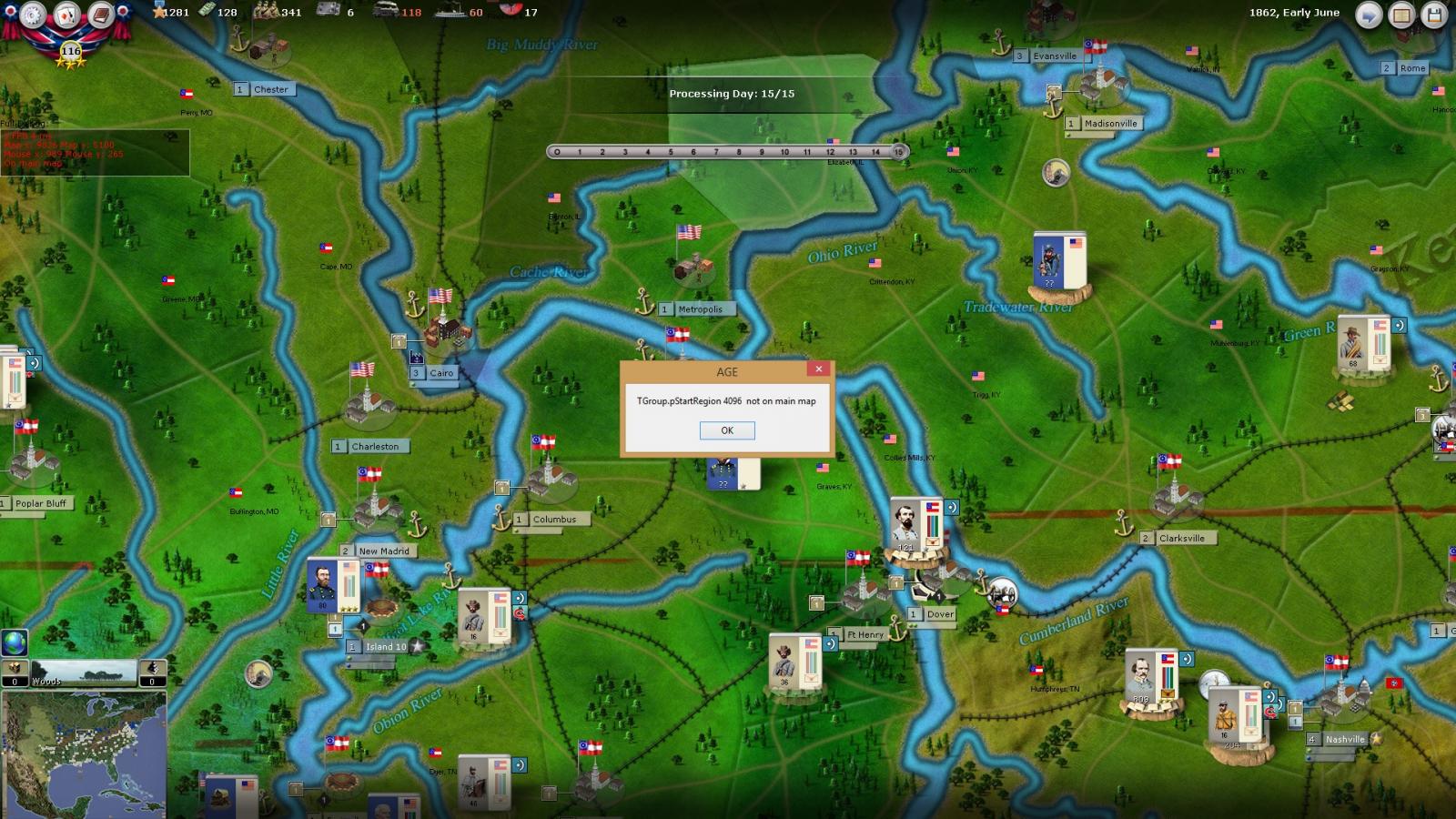 Sometimes, Regional Decision icons remain on the map after they have "resolved". Similarly, sometimes they don't appear right away, even though they are played. Example of the latter, is I have played the Telegraph decision in New Orleans and it doesn't immediately appear. After moving the map and then returning to NO later in the turn, it is there. Weird display issue.