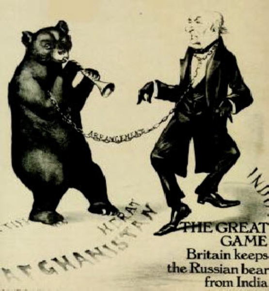 Russian Court in St Petersburg feared for Russia and Turkestan, fostering revolts in Afghanistan and supporting persia, British Cabinet in London feared for India and tried to fight or control persia while taking over an uncontrollable Afghanistan - this led the two nations to the verge of war