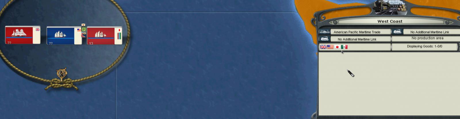 The Pacific trade box is an odd one. I could never trade with that region regardless of ships and knowling full well it had items for sale. I *think* the issue is that the US AI doesn't build a collection centre so the entire region remains disconnected both from the rest of the US and from maritime trade.