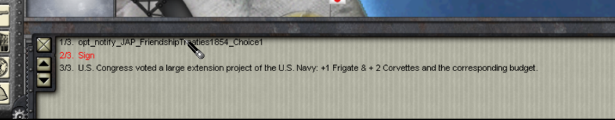 This image displays the result of Japan's diplomatic request for Mutual Supply with Great Britain, France, iirc USA- basically told me to stuff myself. This type of string error happens on a regular basis with Japan.