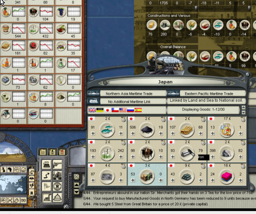 This image shows Japanese Merchants in the American Pacific Maritime Trade box, but I am unable to access or buy commodities or goods: