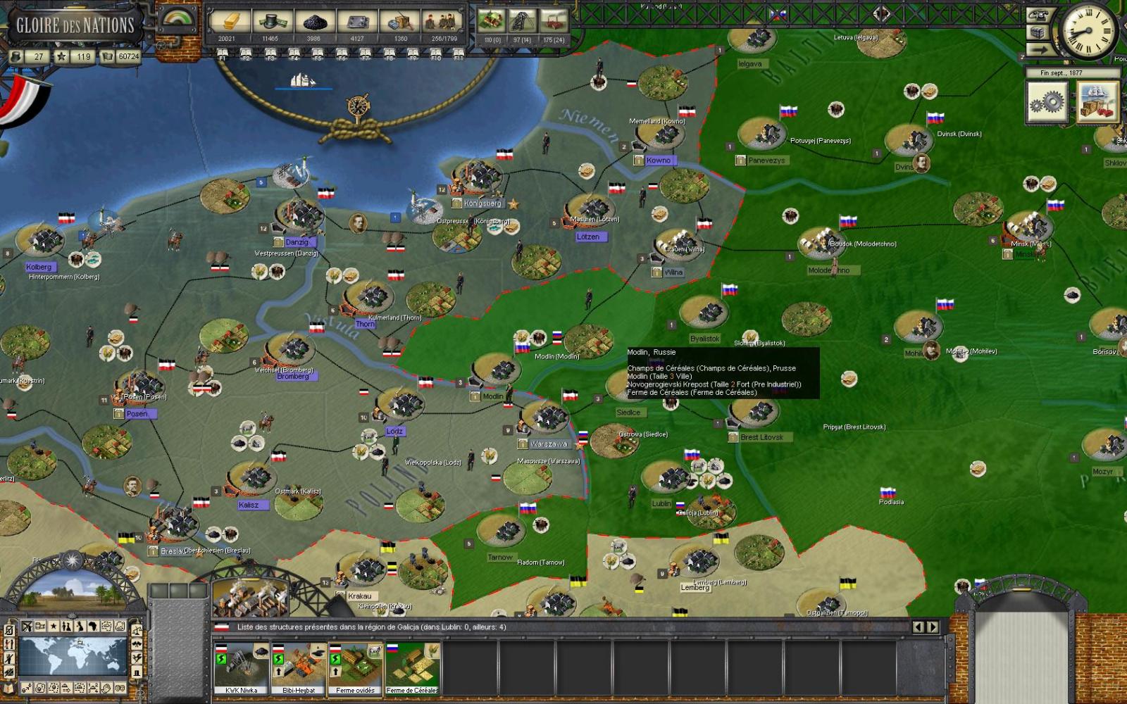 In an attemps to all in the same move, protect Prussia from revolters, help the Russian friend, and (most of all) train Prussian generals with easy targets to improve their skills before the Austrian and French challenge (nothing shocking in terms of realism for me, Russian trained their officers in Caucasus, french in Algeria, Britain in their vast colonial Empire), a swift Prussia not only takes over economic facilities (usual, but I guess now nationalizations/expropriations correct this in the long run) but unwillingly annexes slices of Poland and Lithuania before new taken provinces are given back to Czar. (after this is too good to give back, and Prussia couldn't without a script). This is deeply ahistorical and illogical - sure germany won objectives against rebels and not Russia, but this looks more like a "rush to carve poland and a fait accompli" than a freindly gesture for Russia. in real world, Czar would have demanded, and gotten, the return to Russia of prussian gains, or Prussia would have faced an angry, or even durably hostile Russia. so I correct this possible situation (I never lose an opportunity to train my generals :turc