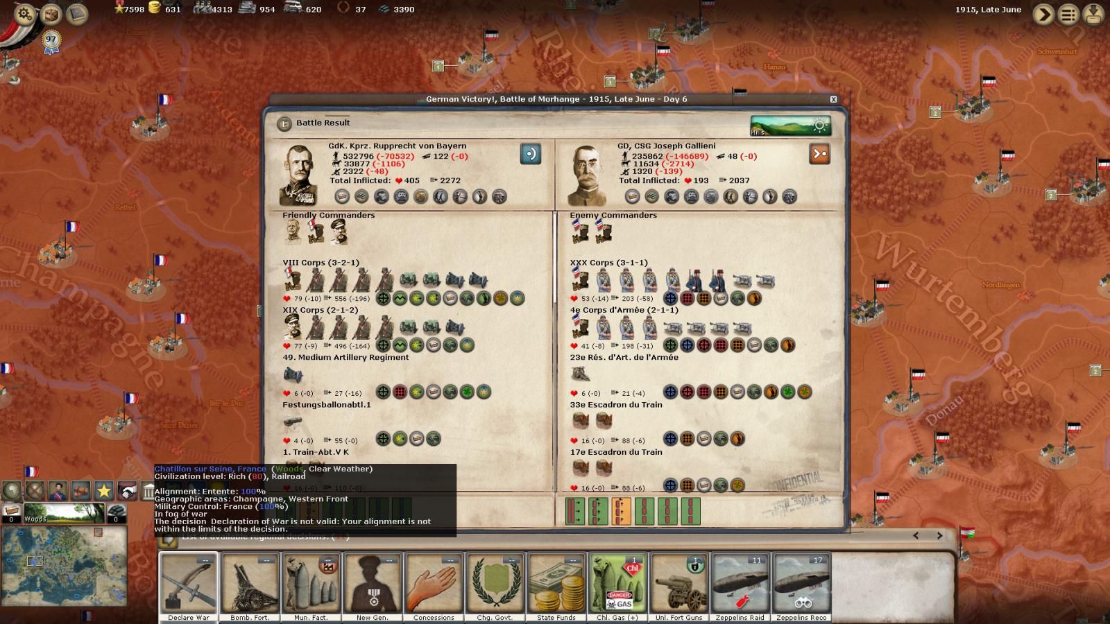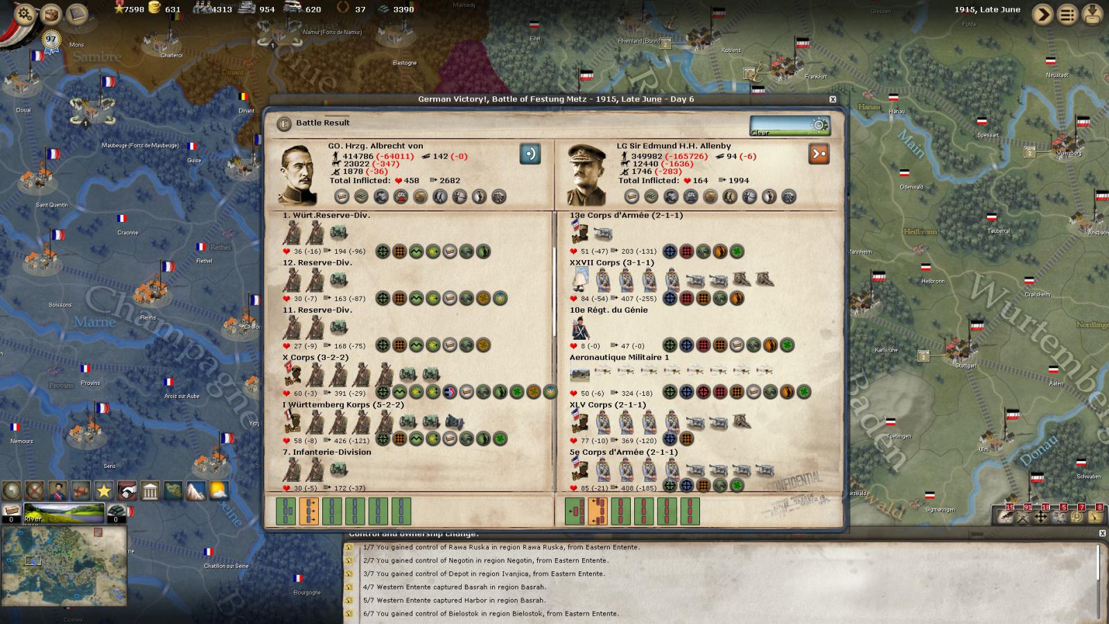 3. the AI attacked with inferiority in planes, guns, men and horses which is "STUPID" in terms of WW1 battles. You have 20% more men and 6% more guns (also better quality or more powerful guns), you have a strong fortress (giving you entrenchments) and the enemy has penalties (river crossing).