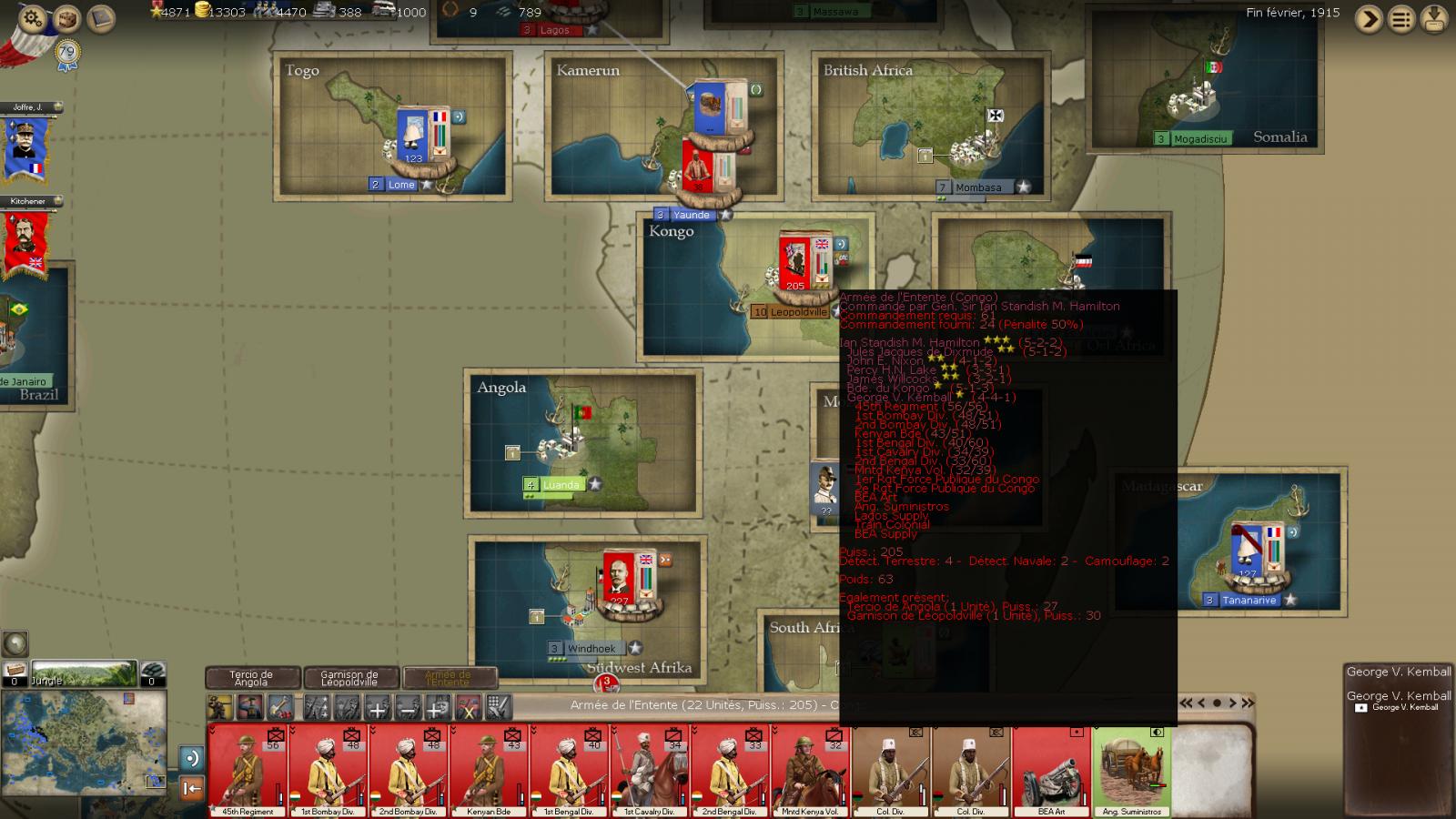 The Brits and Dominion troops are actually to be found at their starting locations. Ah yes and in Africa! I guess Britain has sent Kitchener to starve in Flanders and now considers this a colonial war to be decided in Africa.