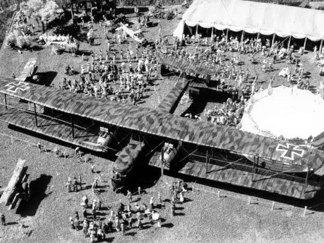 Here a picture of a Riesenflugzeud (giant aircraft), the zeppelin staken R.VI, with a wingspan of 42.2 m (138 ft).