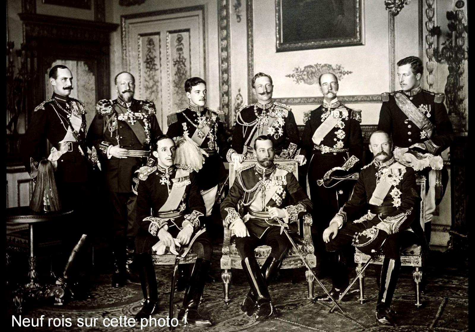Nine kings are in this picture. At least two of them were no longer sovereigns when WW1 started: