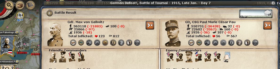5) Corp commanders are getting higher seniority than established Army commanders and when the corp commanders become army commanders, they take over the battles. Buelow (who is a 5 defense) should have been in charge of this battle but because of the screwy way that seniority is working, Gallwitz (with a defense of 1) took over the battle.