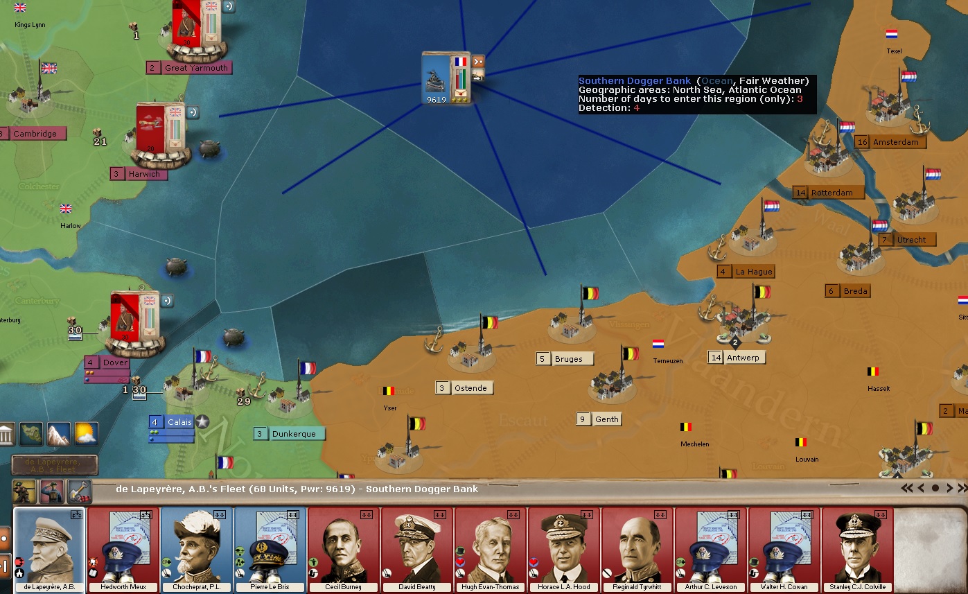There should be, I'm sure. The Grand Fleet could have beaten the German Fleet as well, I believe. The reason I combined the fleets was that I was unaware of the Grand Fleet up North. I felt like I needed to do something to counter the behemoth that had stream-rolled me earlier.
