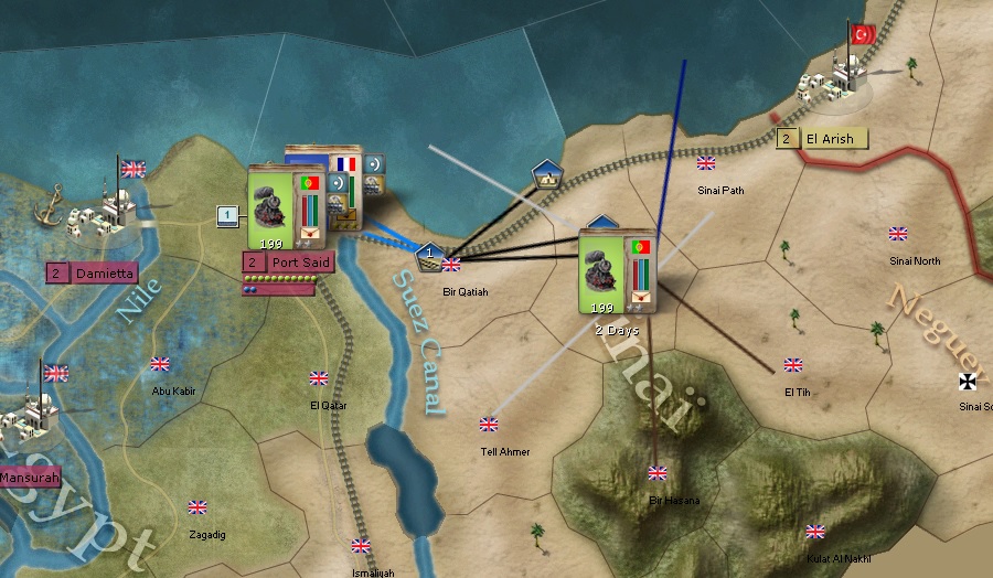 Egyptian theater. A Turkish general named Ferik is moving North. I am pretty confident I have the troops to counter him with about 6-700 power in the region and his supply line has to be very long.
