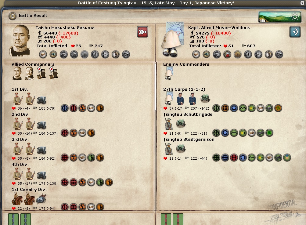 Tsingtau - my army decided to assault. I don't think I told him to and well the results are not what I wanted, either.