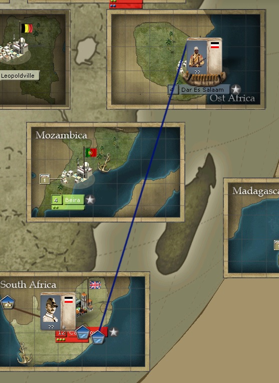 Well, it's not that big of a disaster yet, but South Africa is barely defended and the German troops from Dar Es Salaam attacked. I need to keep South Africa.