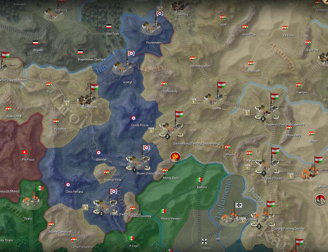 My Western allies seem to be doing well in Italy, piercing deep into Austrian territory. AI does seem to love breakthroughs in this game, going for all or nothing, either achieving major strategic advantage... or losing entire corps in the process.