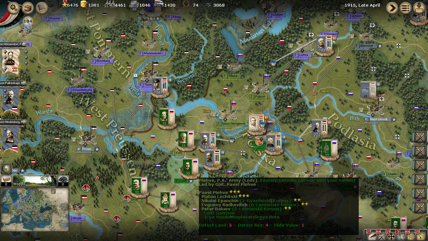 The Russians seem to have bought their Siberian and Caucasian reserves into play, aside from that the majority of their army seems to still be stuck south of Warsaw, incapable of breaking out they've sent three corps for a dash on Vienna. We'll see how much of a Russian army there is left after the Polish pocket falls.