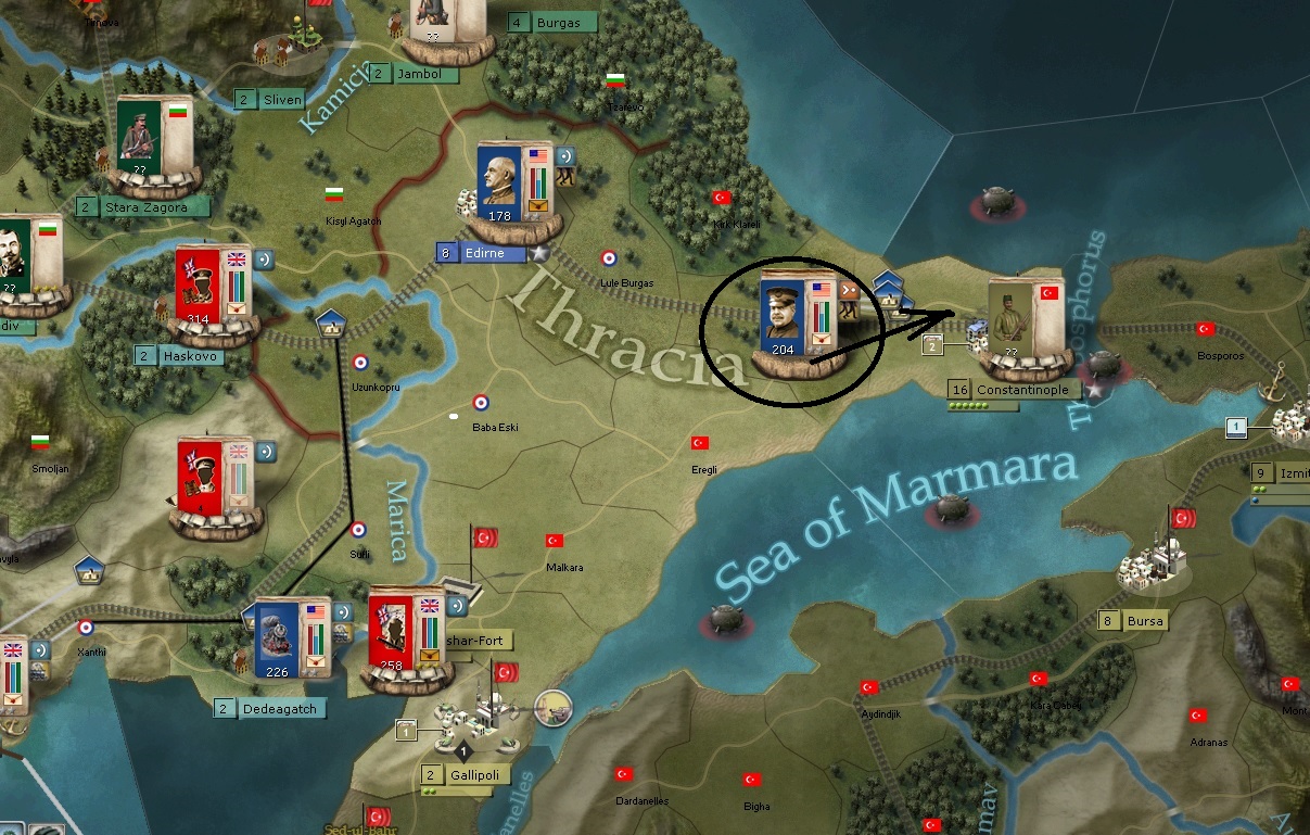 Most of the attention is when my 4 formations will get to Constantinople. That is the big thing for this theater and not much else going onj except the siege of the redoubt on the South portion of the screenshot.