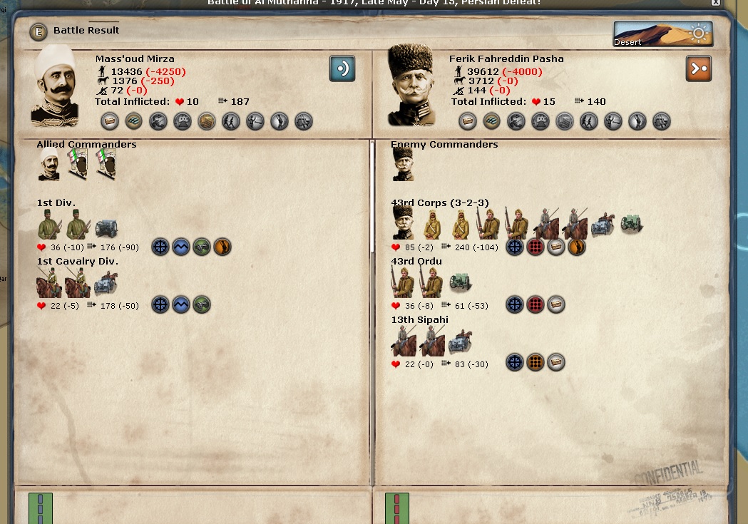 Interesting that even when Allenby wins, he still gets blamed for a defeat, while the guys inder him get congratulated. The Persians first taste of battle isn't a good one in Al Muthanna.