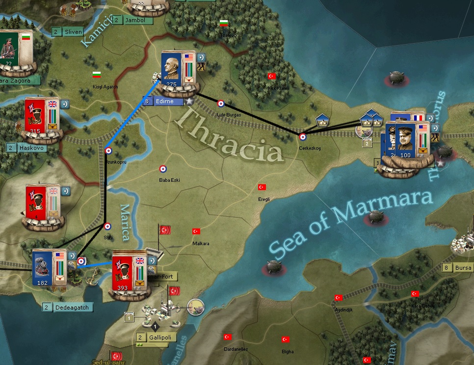 Salonika Front. The USA formations are moving toward Constantinople. I think it will fall fairly easily, and then hopefully Turkey will be out of the war.