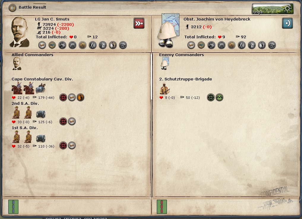Actually, the assault on Kamerun was 4 battles, but I wanted to show you this and I can only attach 5 screenshots.....So I showed battles 1, 2, and 4 and then there is this screenshot....