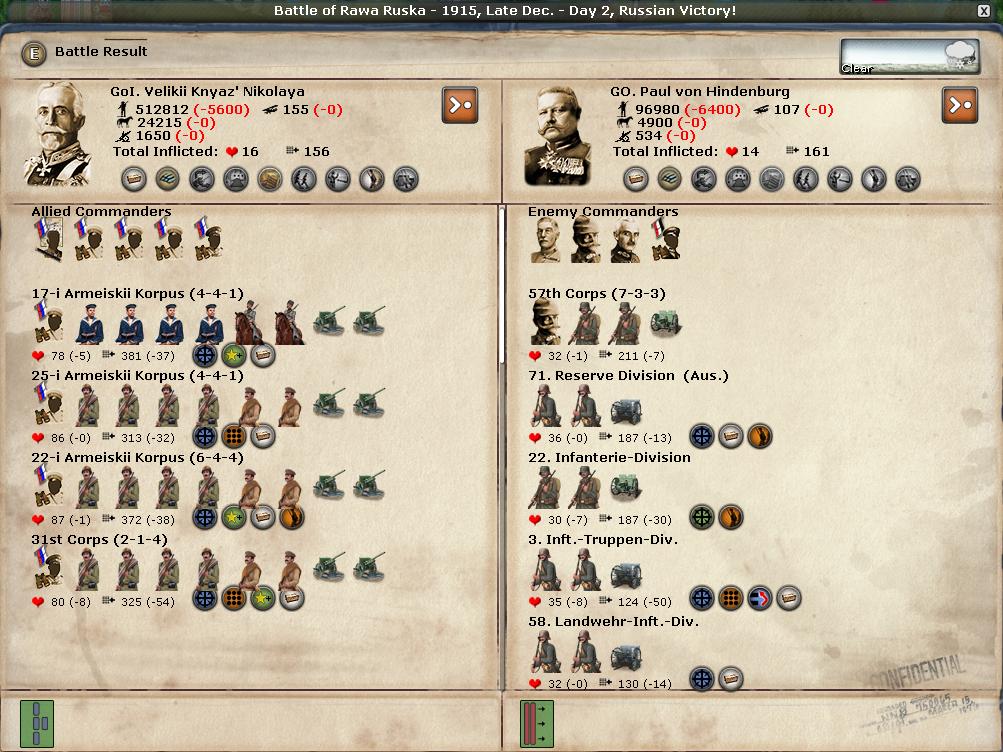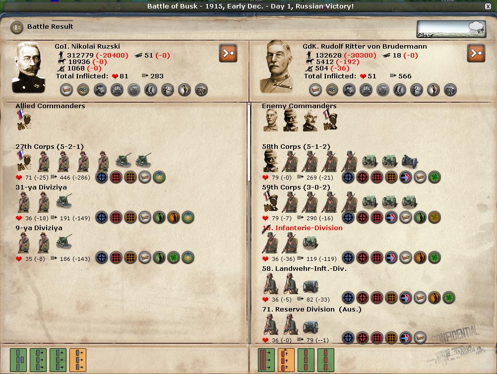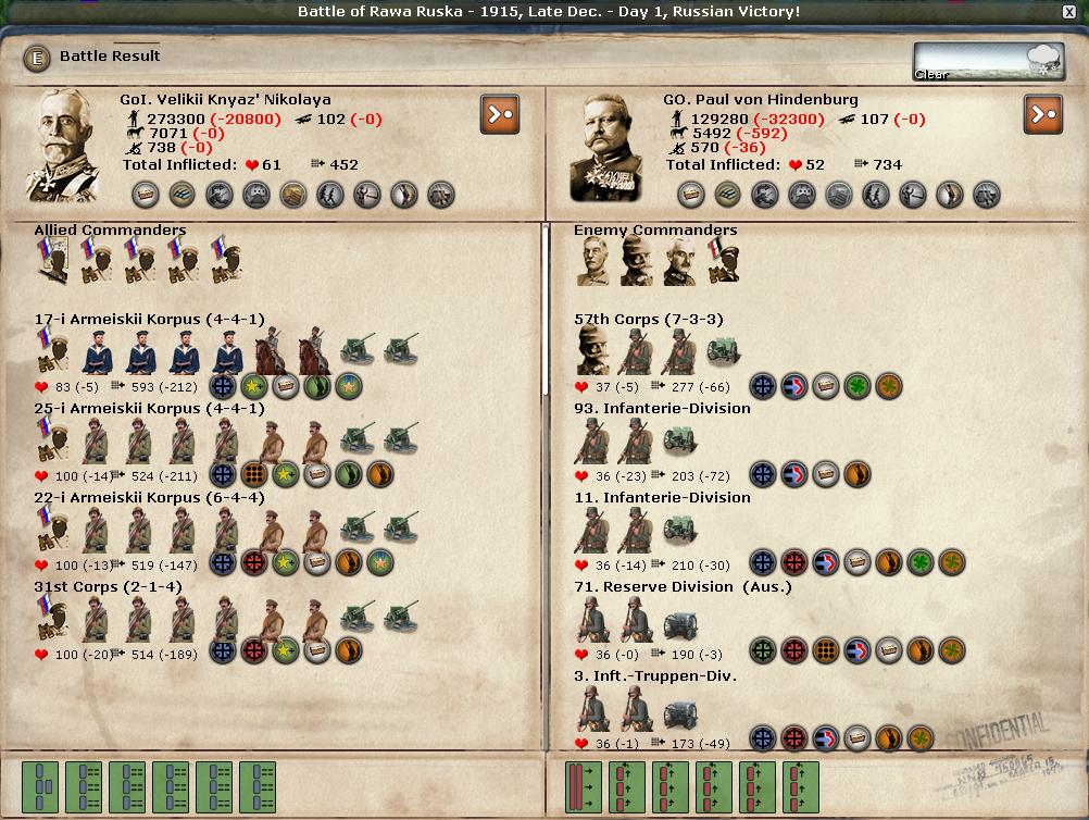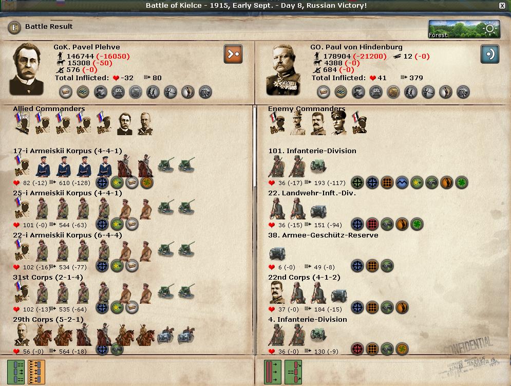 Of course it helped to reinforce the area continuously at expense of the Austrian front. Altogether there are now 9 Russian corps in 6 stacks, more than double the initial forces in the area.