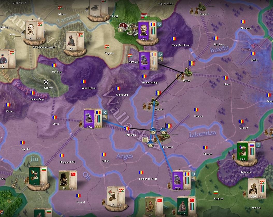 I am redeploying another cavalry corps from the Rumanian front as well as 2 Serb generals who finally snuck in through an opening between CP armies in Rumania.