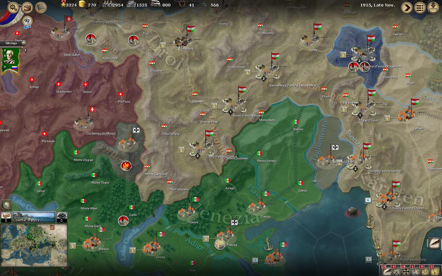 Despite a visibly stable front line, one can see remnants of multiple daring raids deep into Austrian territory. One that is missing is Trieste: it was under siege for a couple of months.