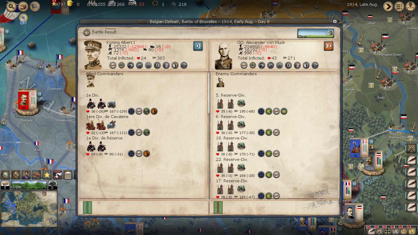 The Belgian Corp led by Koning Albert I was attacked in Bruxelles before they could withdraw to better positions. This resulted in a favorable battle, considering we where outnumbered and severely outgunned by the German Army, led by a superior general.