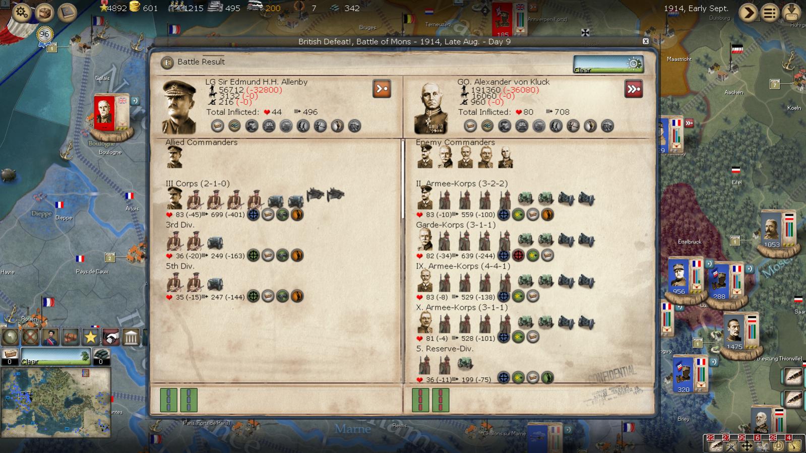 The British have landed, I have ditched their rubbish commanders and under Commander Allanby have planned a lightning move to target the German Corps as they most probably march into Mons, Douai and south.
