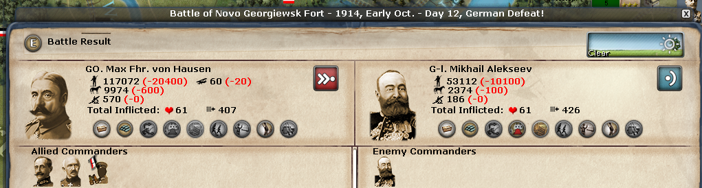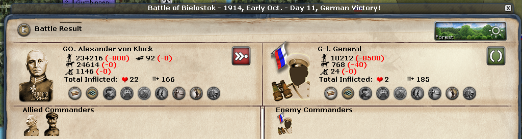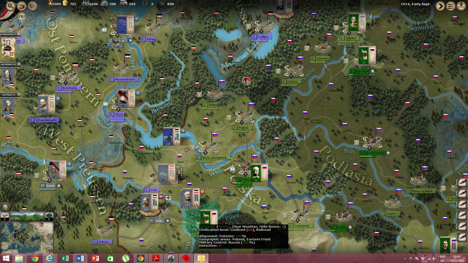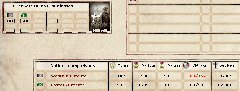 Altaris wrote:I'm watching with interest. I've tried the same warplan combination as the CP in PBEM before. Tend to see major advances in Poland and Lithuania in 1914/early 1915, but the Western Front can become very precarious. If the Entente keeps up the pressure on the Western Front they can really put a strain on Russia. Also, keep in mind that the British aren't as critical to rush to the Western Front if Moltke Plan is chosen, and can show up for some really nasty surprises in Serbia or against the Ottomans.