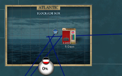 So we decided to move two fleets with 12k and 11.4k CB stacks to the blockade box, while finishing our sub screen and pulling back all fleets worldwide to England to have enough punch, if the German fleet will show up ;-D The Germans can bring in an cpmbined CB of 16k in two fleets, if they pull their wordlwide fleet together - so we should be save for now - up until cohesion is getting lower. It is only 4 days from the nearest German port to the blockade box - so we have to stay alert....
