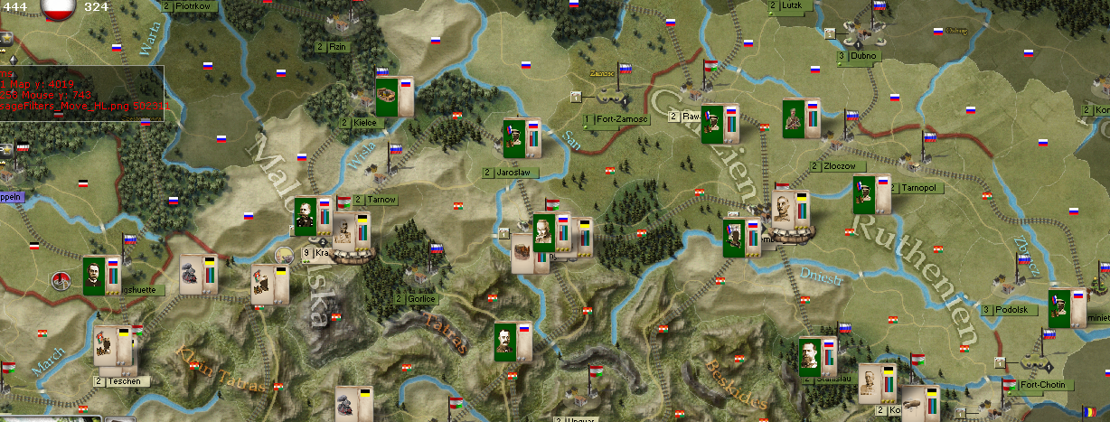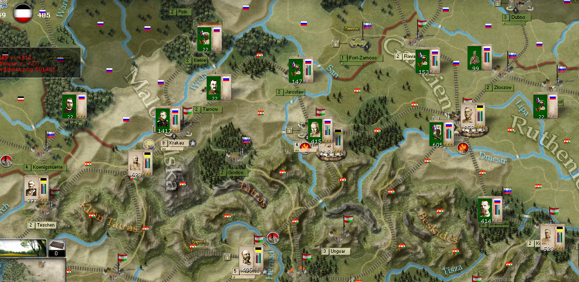 Here's the situation in the Carpathians. Austrians are holding.
