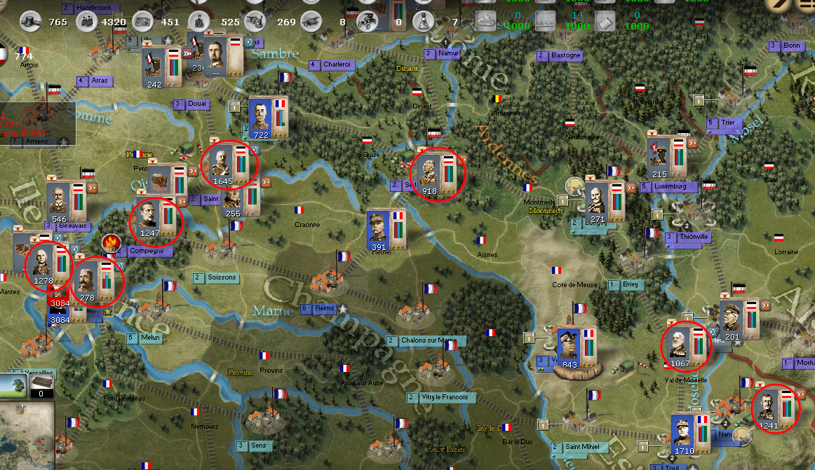 3) Push the 3rd down to Compiegne, shifting the 1st down to San Quentin and 2nd down to Douai, increasing the gap between the Brits and French.