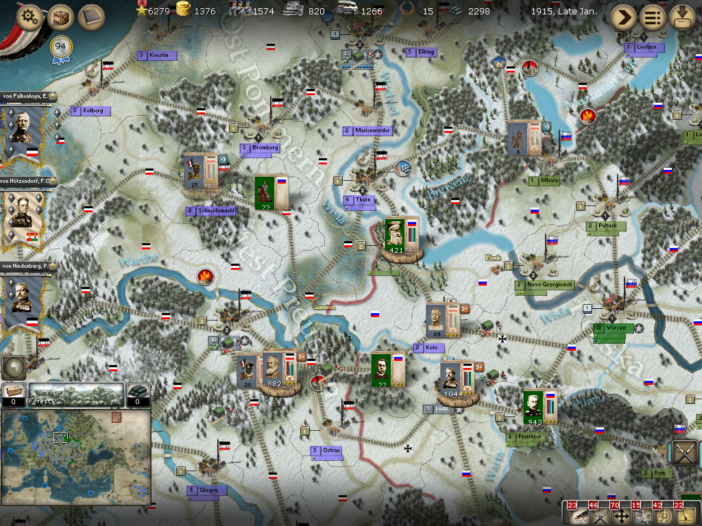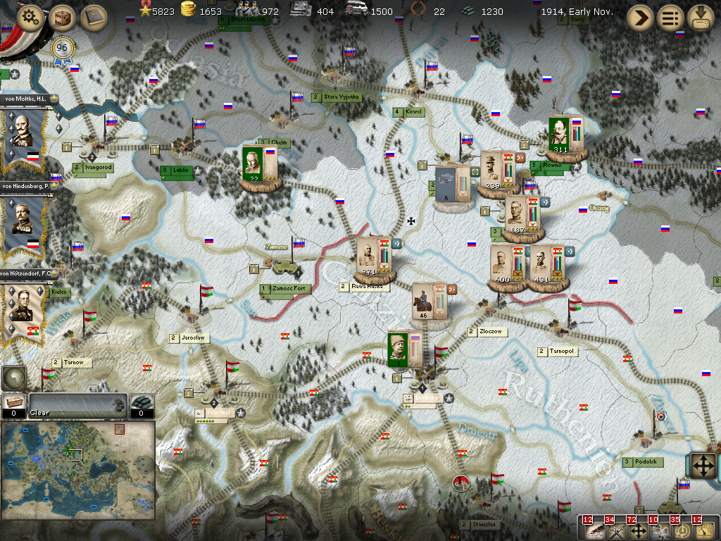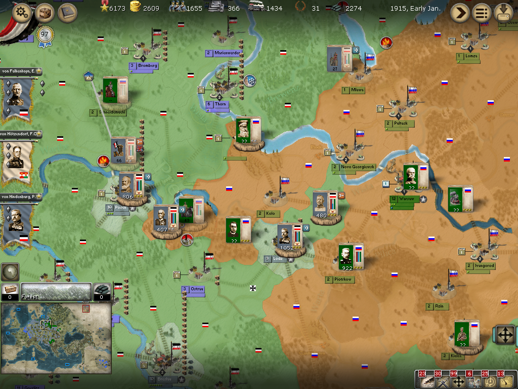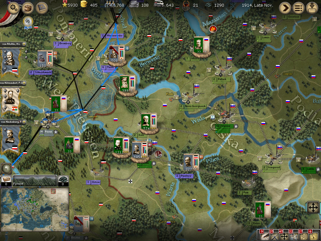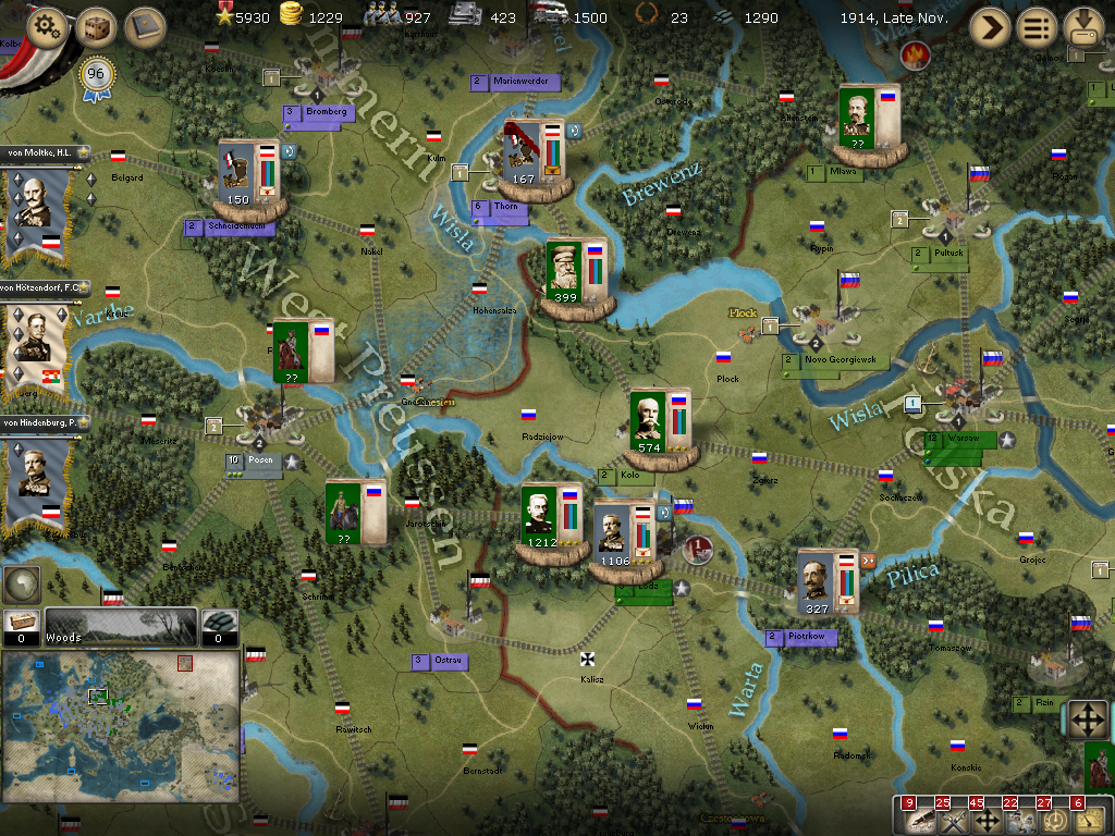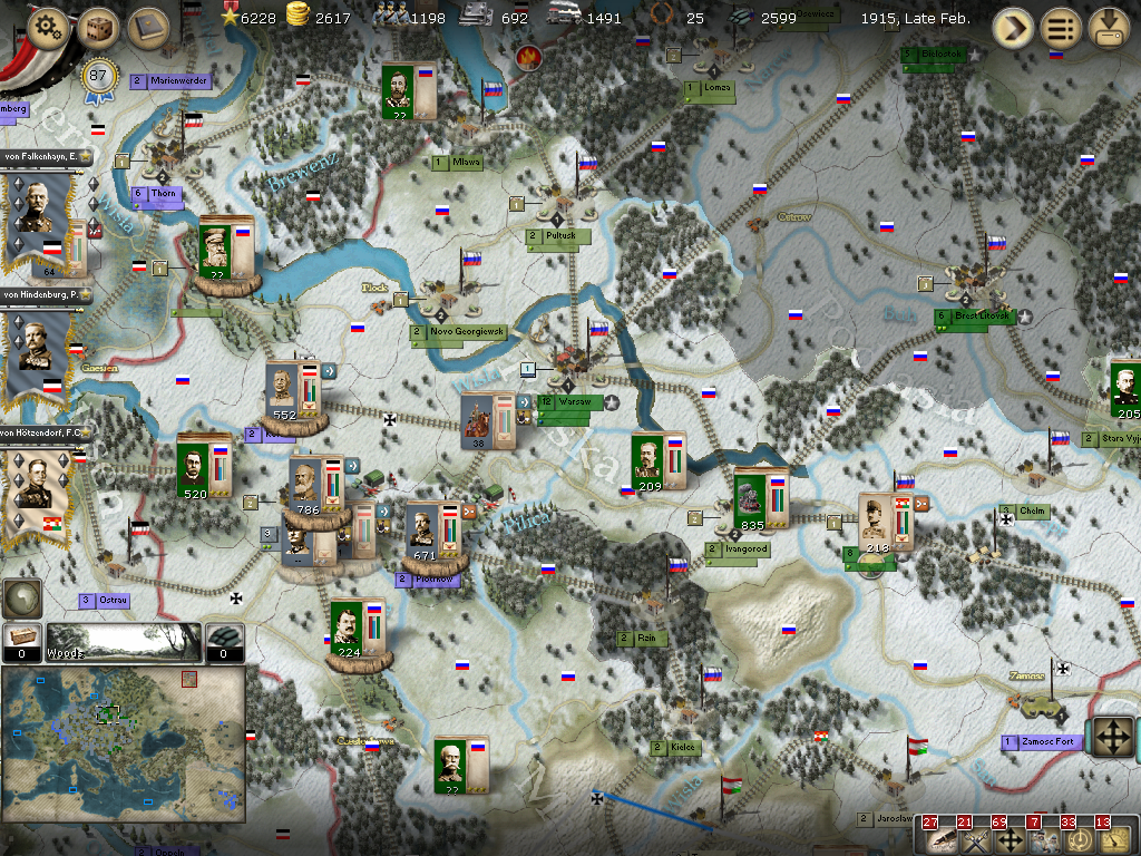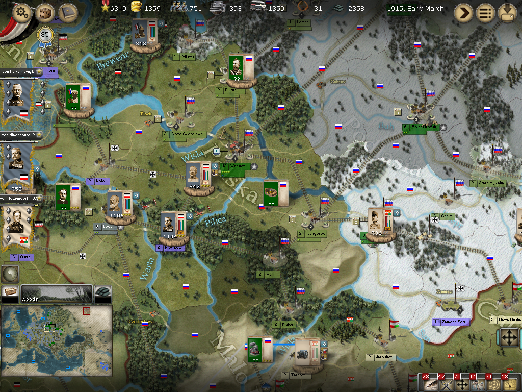 [color="#FFFF00"]Poland:[/color] The road to Warsaw is now open and of course the Russians finally have it better defended with apparently 14 units with 980 PWR plus a level 1 fort and its units.
