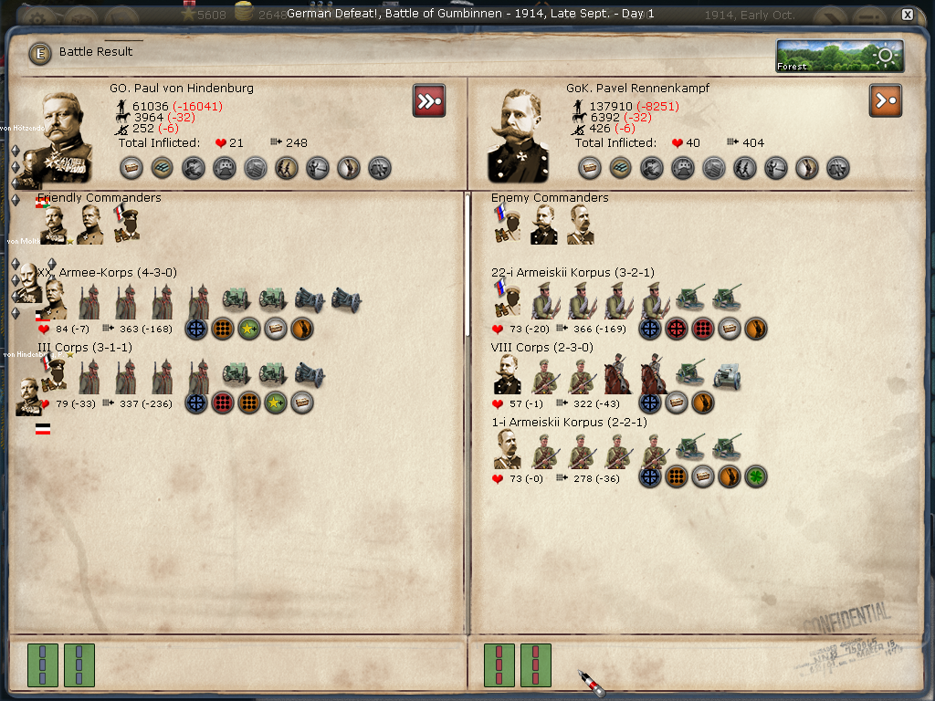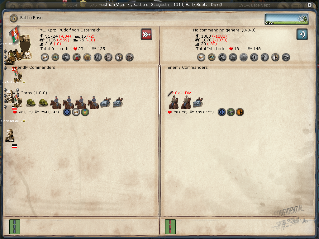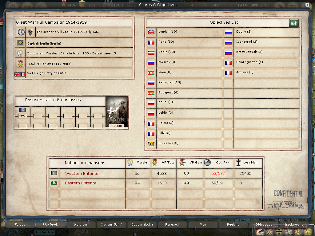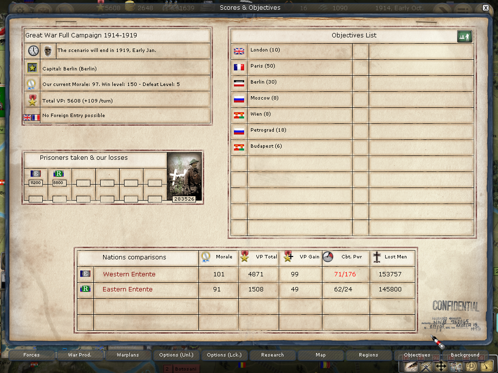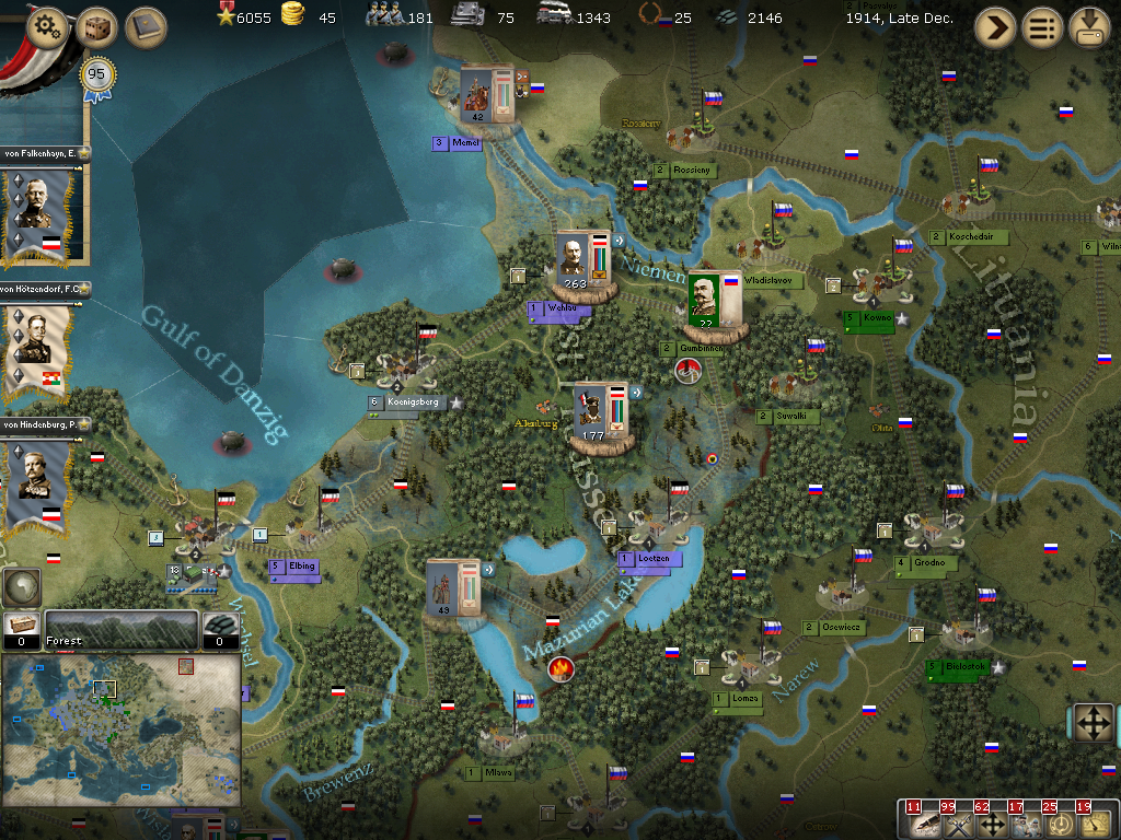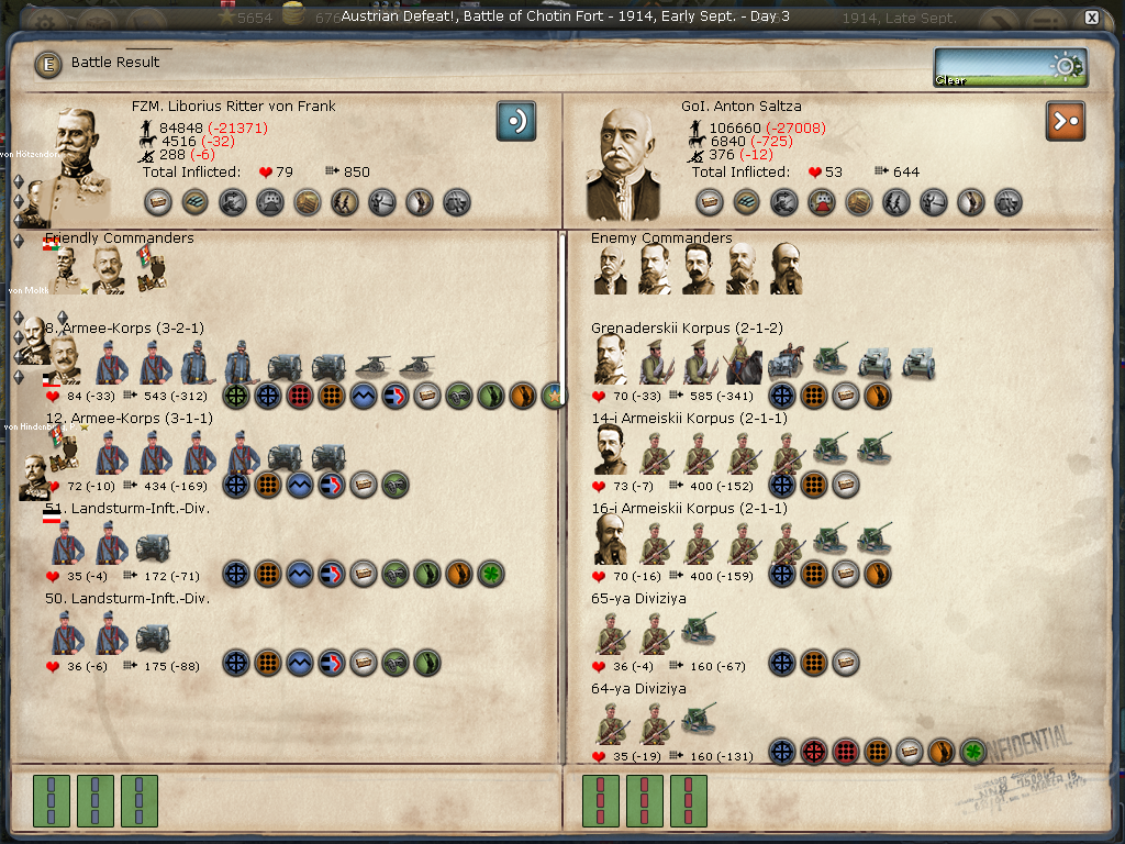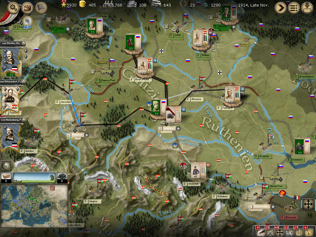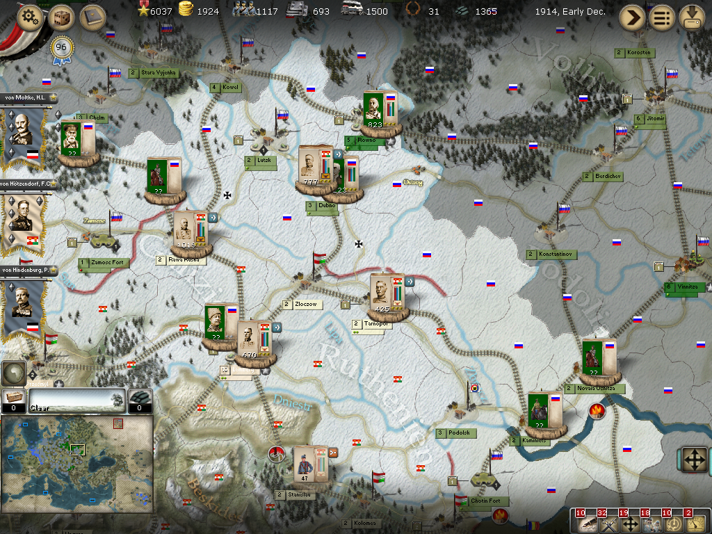[color="#FFFF00"]Poland:[/color] The road to Warsaw is now open and of course the Russians finally have it better defended with apparently 14 units with 980 PWR plus a level 1 fort and its units.