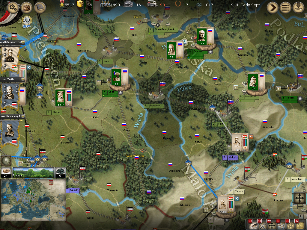 [color="#FFFF00"]Poland:[/color] Russian forces left Piotrkow and appear to be readying for an attack on Krakau rather than defending Warsaw.