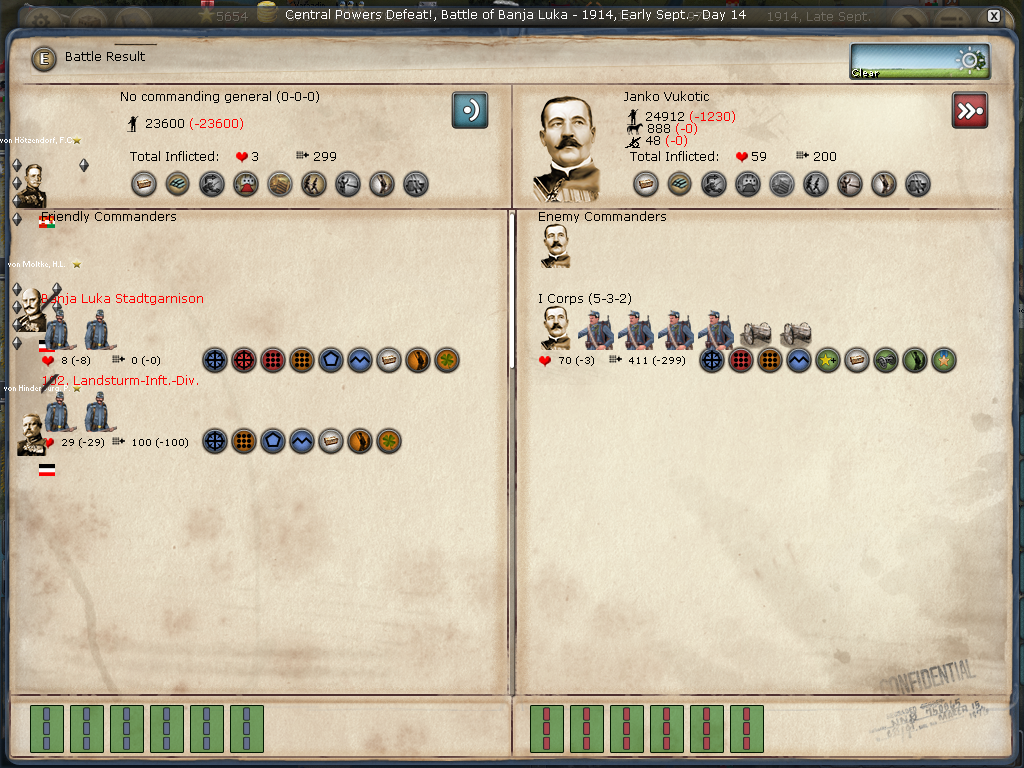 [color="#8B4513"]Serbia:[/color] We won a battle in Belgrade but will need a little luck in besieging it as reinforcements will take 14 more days and a good leader with decent force will need to be moved there yesterday!