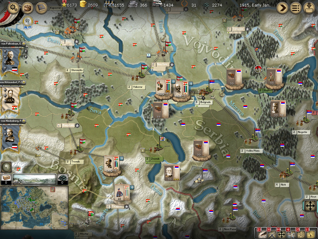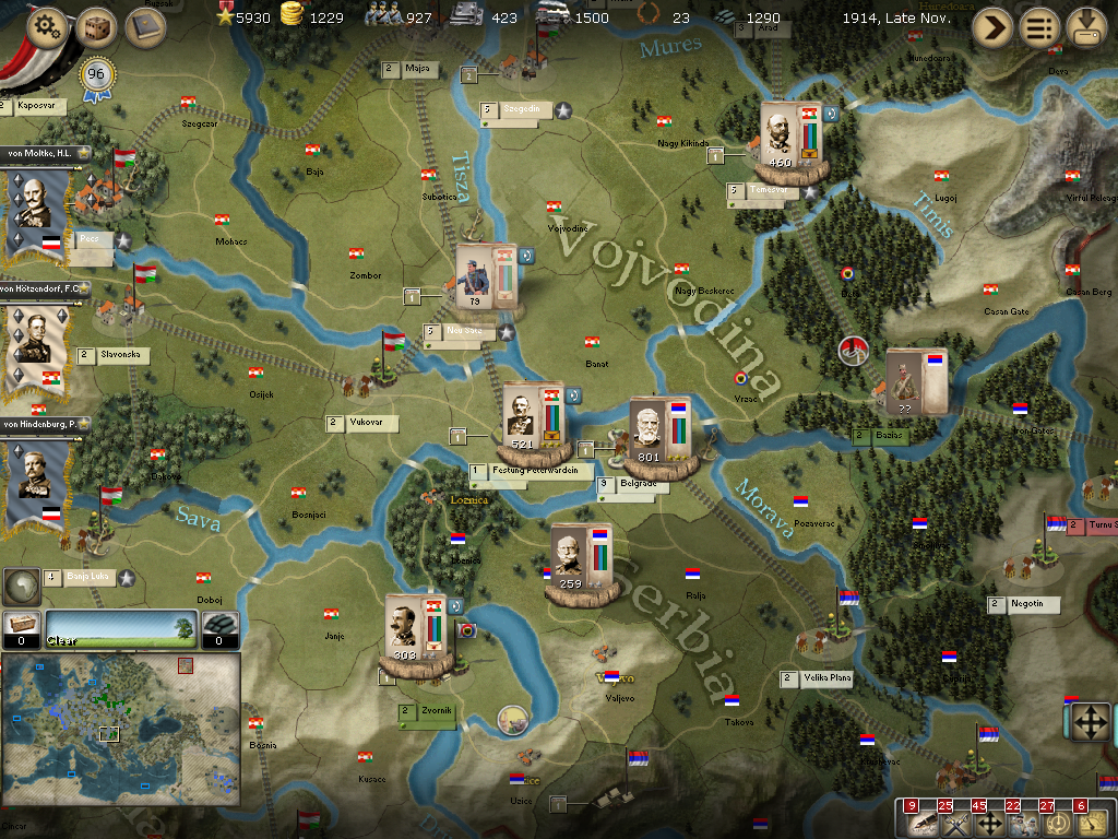 [color="#8B4513"]Serbia:[/color] von Bruderman's Armee is in Arad to accompany von Krasnik's army in taking Belgrade soon. I am very eager to get this done so the mopping up of Serbia can be done and move the bulk of the forces to Russia.