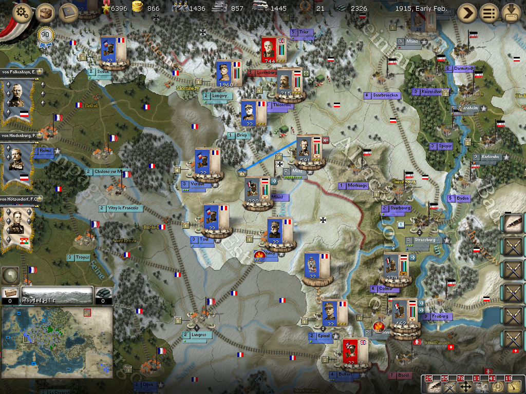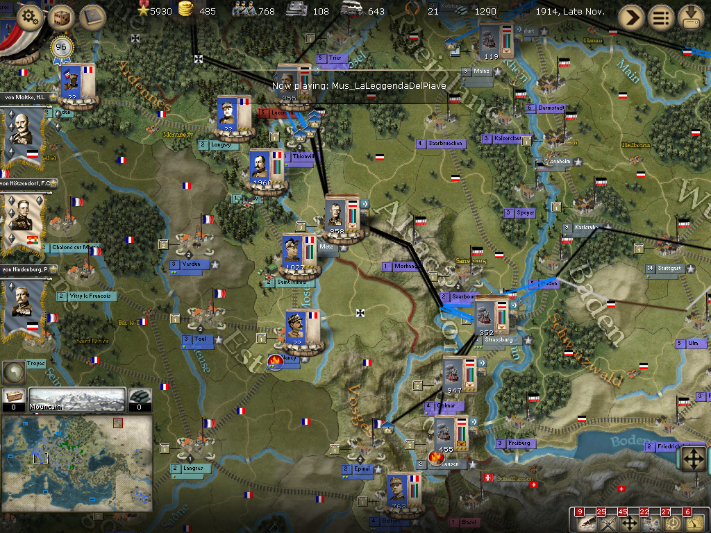 Forces arrive in Val de Moselle, reinforcements on the way to Muelhausen as it's victorious, but small force tries to valiantly hold.