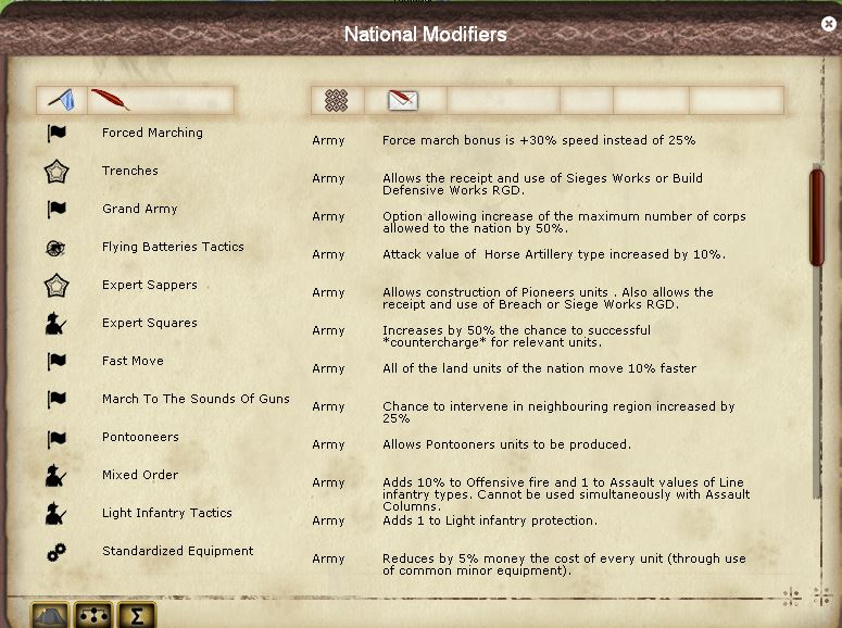 Franz Ferdinand wrote:Thanks for answering my questions. That is a lot of modifiers, I really hope that they include tool tips so we know what we are getting. I presume that all of them will be included in the manual, but still, having it in the game is just so much more practical.
