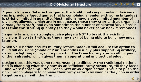 veji1 wrote:But could you confirm for example that MTSG between allies doesn't work as well (or at all) ? For example to me it would make sense for MTSG between allies to be a national modifier : with time the Prussians, Austrians, Russians, British and co will be able to coordinate and MTSG so that scenarios like Leipzig or Waterloo become possible. But for at least the first few years of the GC, MTSG between allies should be non existent : Austerlitz after all would be emulated by having the russian and austrian stacks sitting together in the same province and moving together (ploddingly if I may say so).