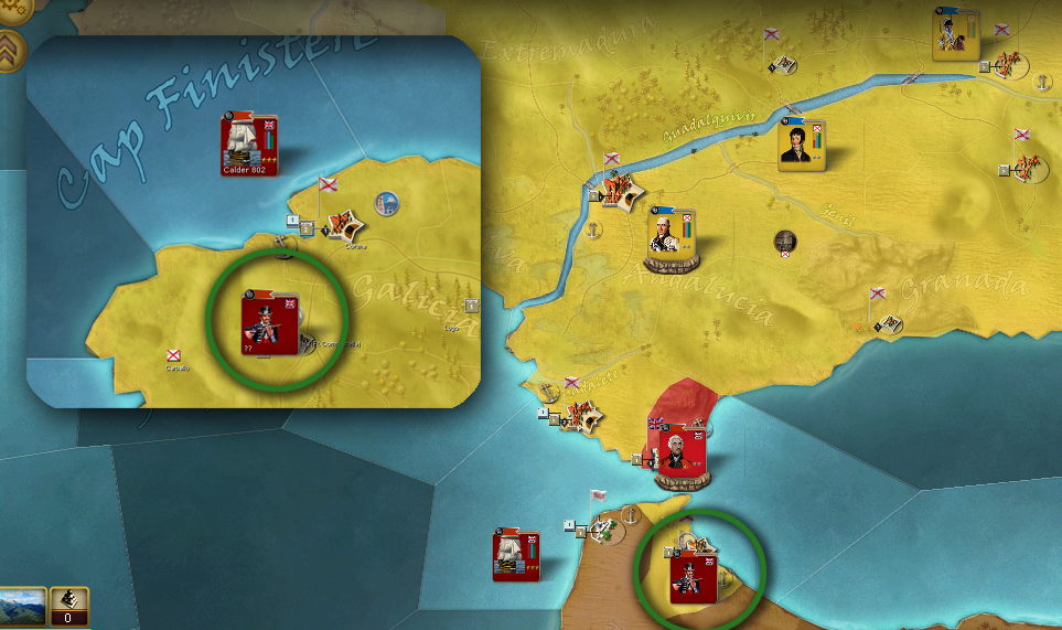 Curiously, during the second and third week the British land sailors in Ceuta and Galicia. These are small units that the British can create in coastal regions close to their fleets through regional decisions, and Haplo use them to test the defenses and disturb a little. So he can gather information about the Spanish forces in the north of the Iberian peninsula.