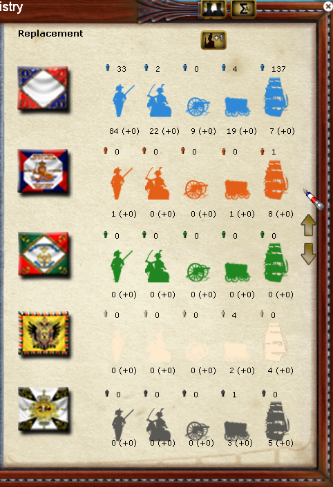 I'm playing as the French, it's Dec 1814. On the F2 Replacement screen, I am not able to scroll up or down through the various nations' replacement chits. It seems random which nations appear in my list. Obviously, France is always at the top, but each turn it changes which 4 nations are shown, and the scroll up or down doesn't work. Thanks in advance.