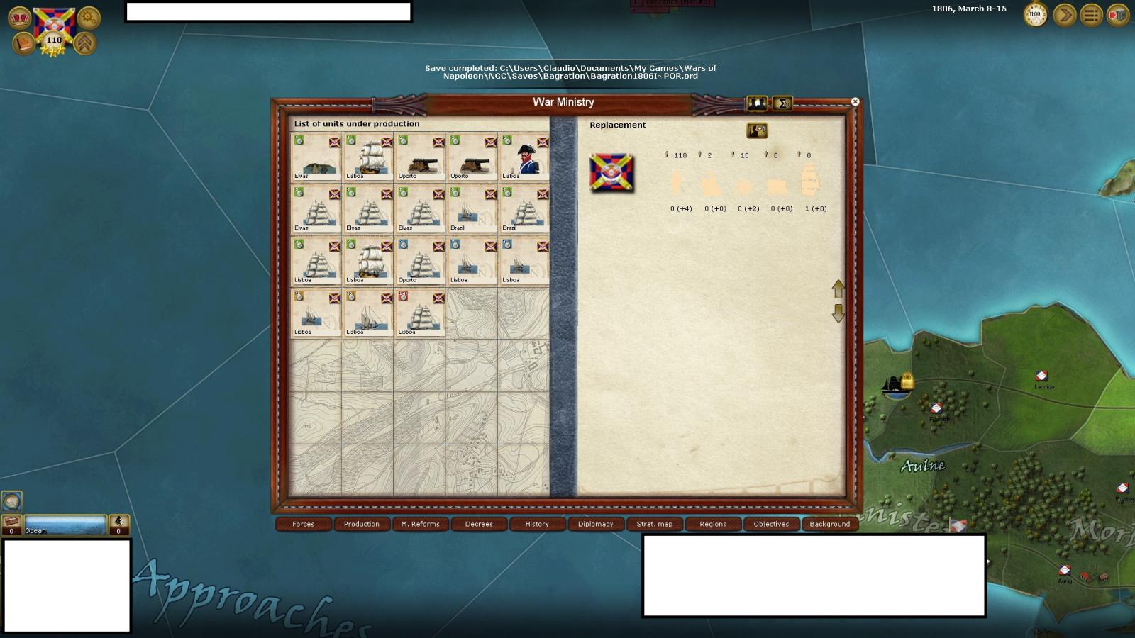 Despite being invaded by Spanish armies, Portoguese are mostly building garrisons units, costal artillery, light warships and merchant ships.