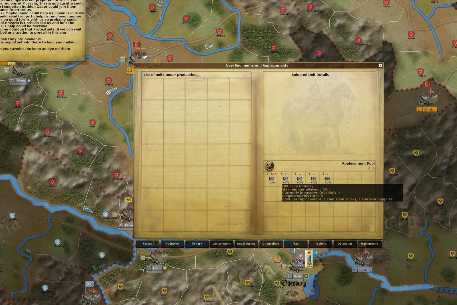 Oh and regarding Gribeauvals post, in my game you can buy HRE infantry replacements, but in the Brandenburg tab you can only build cavalry and arty replacements.... I have not played in a while so I cant remember if that is WAD or not.