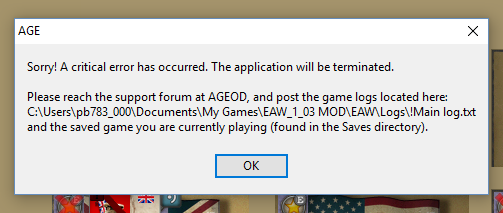 9:16:13 PM (Reporting) TScriptEngine.TriggerEvent This event not found while triggering a specific script C:\Games\EAW_1_03 MOD\EAW\Events\WW1_TechEffects.sct evt_TechEffect_Gas0