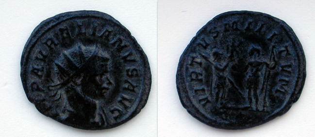 (270-275) Antoninianus, the reverse depicting Aurelian and a soldier.