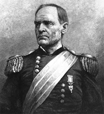 In at least two different pictures I have seen of General Sherman, he has a medal pinned on the breast of his jacket, hanging from a ribbon. I wonder what it was, because I never see any other generals wearing anything like this.