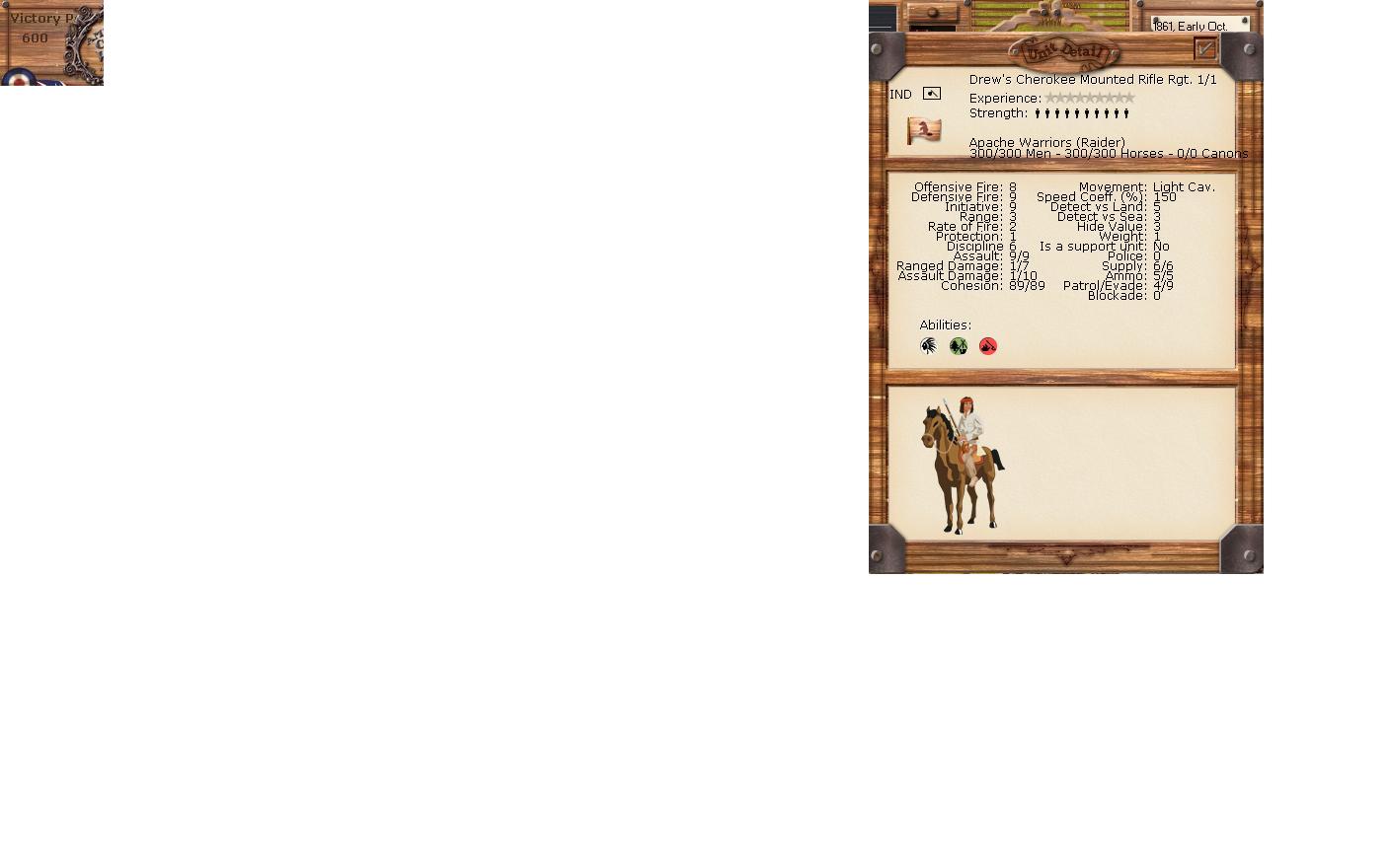 I'm definitely NOT any kind of expert on native American tribes, but one would think that Watie would have lead Cherokee warriors-OR-at least the regiment's name would reflect the tribal origins/composition of the regiments(ie. 'Apache Rifle Regiment' rather than "Cherokee Rifle Reg.')-OR-each regiment would have the more generic 'Indian warriors' label. Please help me with my logic or historical accuracy. Thanks for a great game/forum!