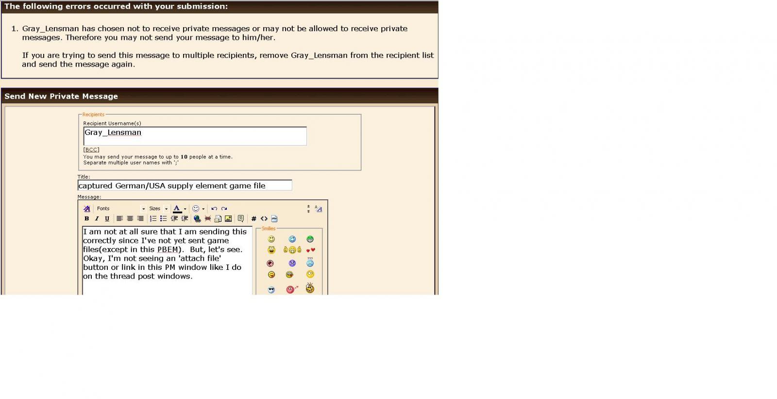 As for posting the game files. My PBEM partner/host may not want to divulge any info on our game. So, let me work on some other test games and see what happens. In any event, thanks for the attention to my question.