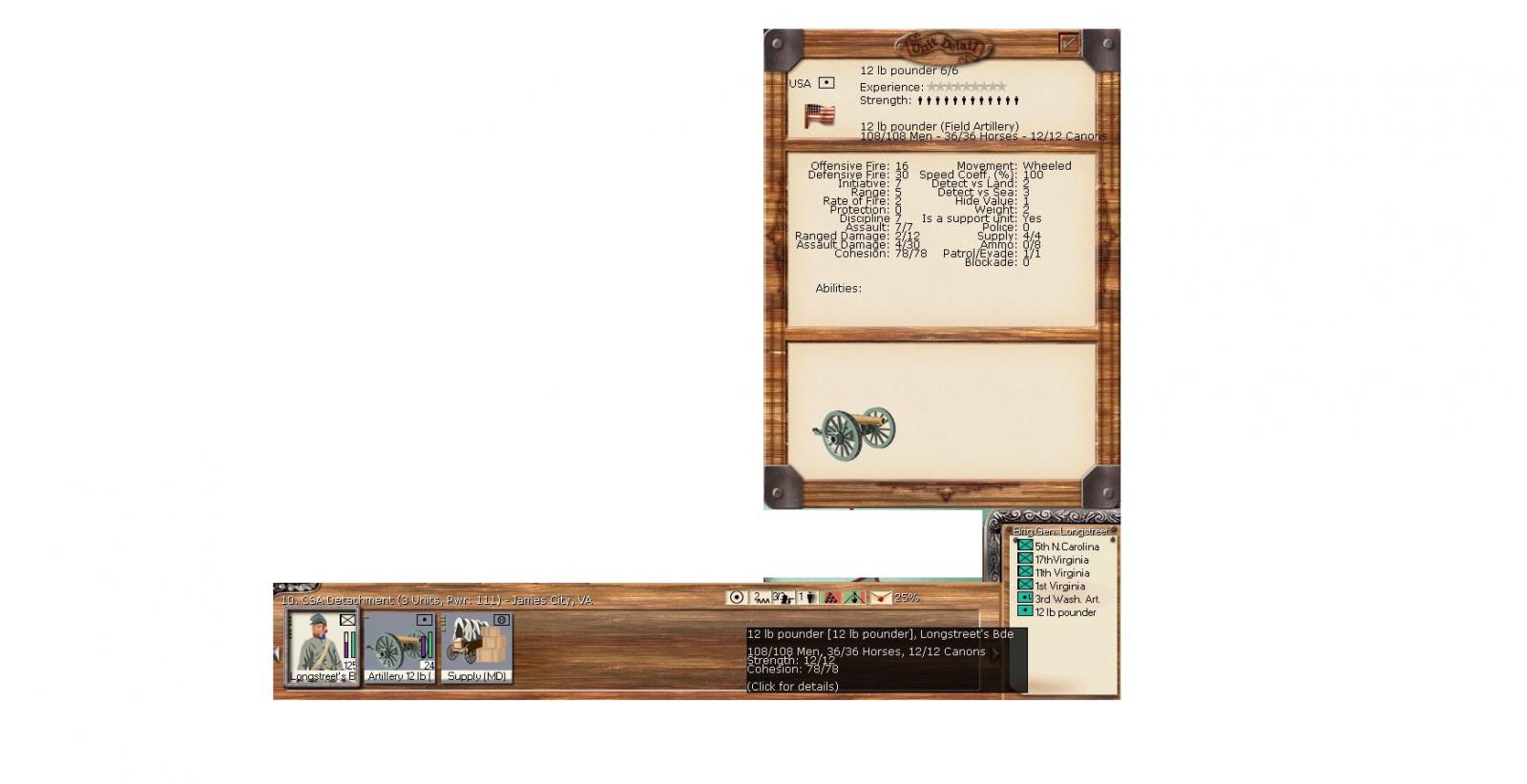Right on, okay, try this file(s). In case I am supposed to give you info too, check out Longstreet's brigade and the captured artillery under Jackson's command laying siege to Ft. Monroe. They will combine.