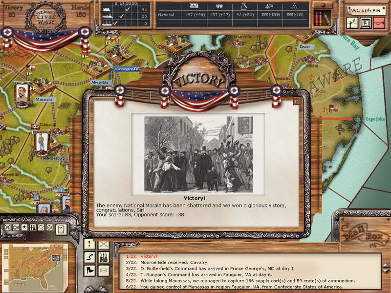 As to quickest wins this thread is not inspiring me to get the game if the AI is so pathetic. I sure hope that the AACW AI gets a major improvement over the one in BoA.